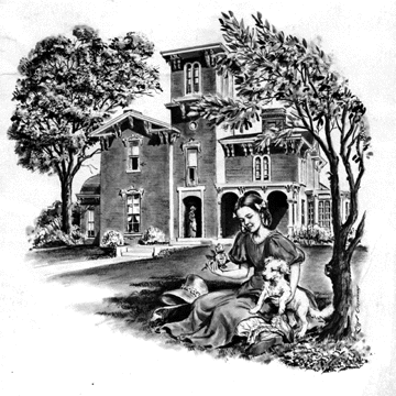 Young Mary Todd playing at her grandmother's house in Lexington, Kentucky. Drawing by Lloyd Ostendorf