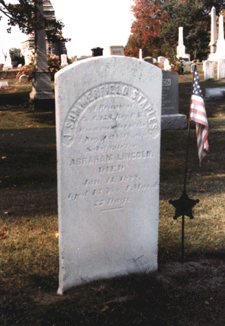 Erected by a proud father nearly ninety years ago, a tombstone whose lettering has grown dim after years of exposure to the elements marks in Stroudsburg, Pennsylvania the final resting place of the young soldier who served as Abraham Lincoln's representative in the Union army during the closing months of the Civil War. The simple stone slab in Stroudsburg's Lower Main Street Cemetery reads: